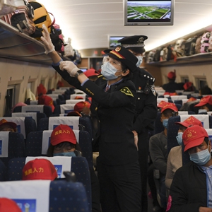 当天,500多名来自甘肃省定西市的务工人员搭乘G1901次列车抵达福州。这是闽陇两省间2021年首趟返闽务工专列。