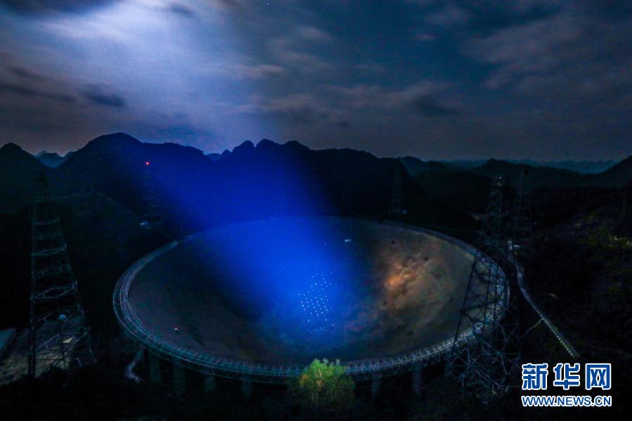 2020年1月11日,被誉为“中国天眼”的500米口径球面射电望远镜通过国家验收正式开放运行,成为全球最大且最灵敏的射电望远镜。夜色中的“中国天眼”全景(2020年1月8日检修期间拍摄)。新华社记者 欧东衢 摄