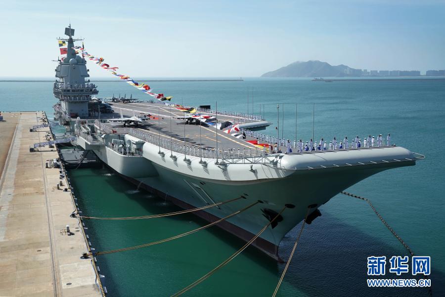 2019年12月17日,我国第一艘国产航空母舰山东舰在海南三亚某军港交付海军。经中央军委批准,我国第一艘国产航母命名为“中国人民解放军海军山东舰”,舷号为“17”。新华社记者 李刚 摄