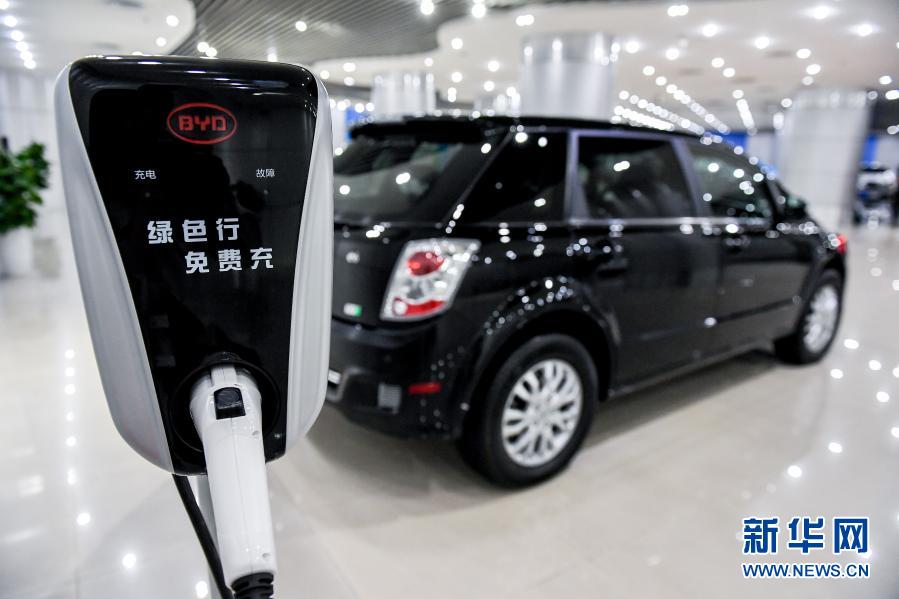 这是在深圳比亚迪总部展厅拍摄的比亚迪新能源汽车和充电桩展品(2018年11月30日摄)。新华社记者 毛思倩 摄