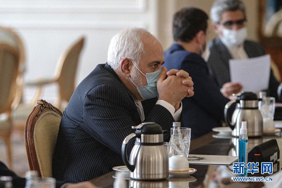 2月21日,在伊朗德黑兰,伊朗外交部长扎里夫和国际原子能机构总干事格罗西(不在画面中)举行会谈。