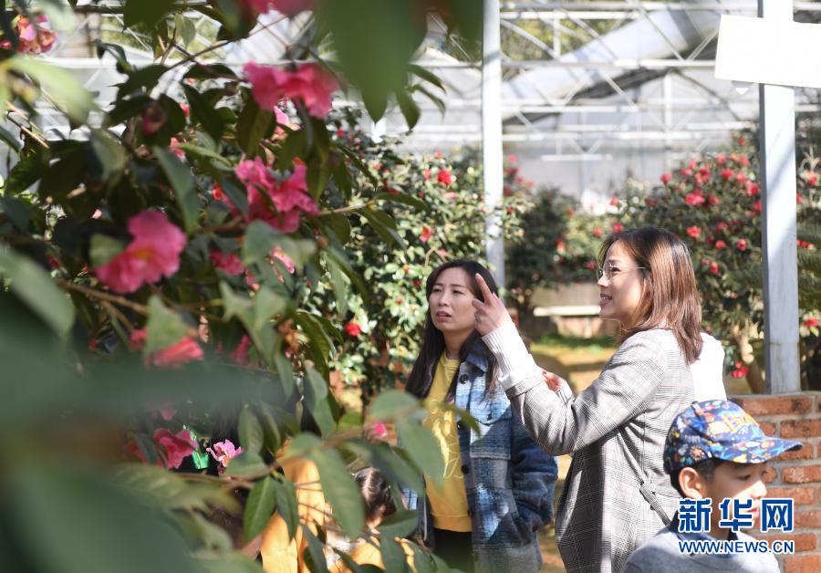 谢丞恩(中)带领客人参观农场花园(2月20日摄)。