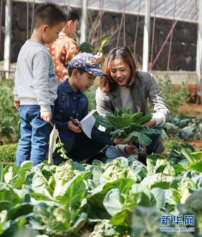 谢丞恩在农场内带领来参观的小朋友们认识蔬菜(2月20日摄)。新华社记者 季春鹏 摄