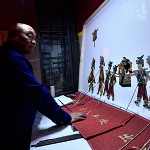 2月22日,在海东市平安区平安驿特色小镇河湟戏苑内,皮影戏艺人姚亚生在表演。元宵节将至,青海省海东市平安区组织河湟皮影戏等文艺演出,让游客在戏苑感受传统河湟民俗文化的魅力,欢欢喜喜迎佳节。新华社记者 张龙 摄
