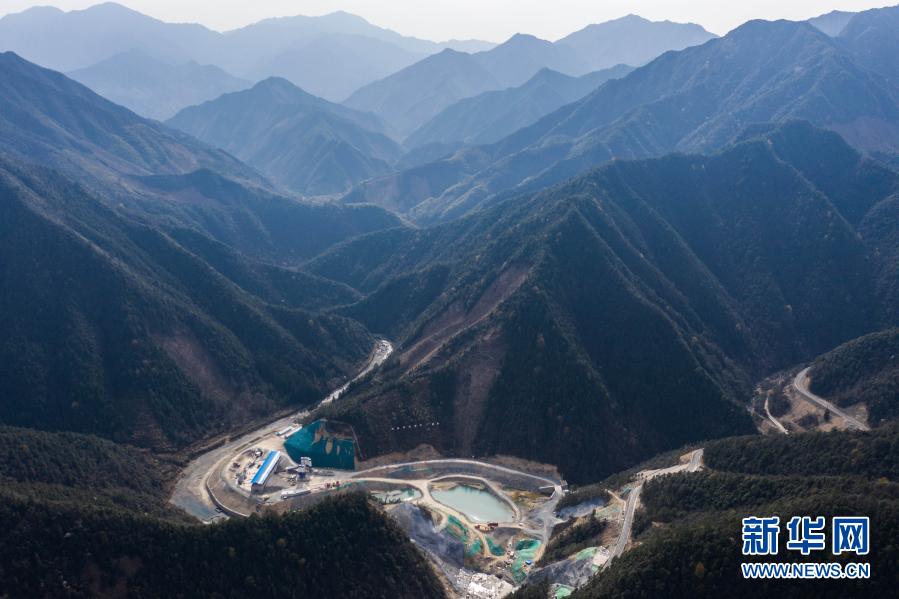 空中俯瞰双溪口水库工程施工现场(2月22日摄,无人机照片)。新华社记者 徐昱 摄