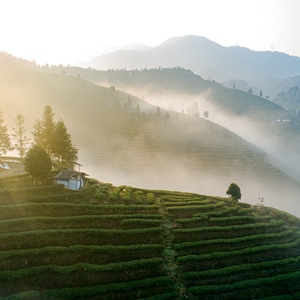 2月22日,在湖南省永州市双牌县上梧江瑶族乡盘家村云台山生态有机茶园,茶农在采摘春茶(无人机照片)。新春伊始,湖南多地茶园进入春茶采摘期。新华社发(蒋克青 摄)
