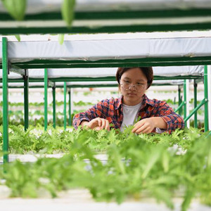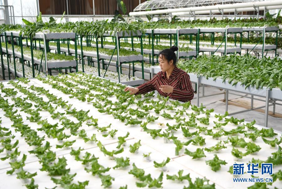 2月22日,河北省河间市一家现代农业园区工人在管理无土栽培蔬菜。