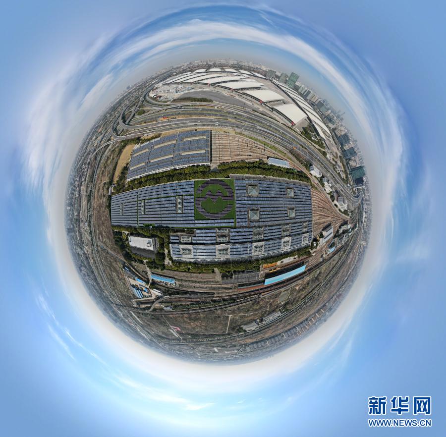 2月22日拍摄的位于上海地铁龙阳路基地内的分布式光伏发电站(无人机全景照片)。