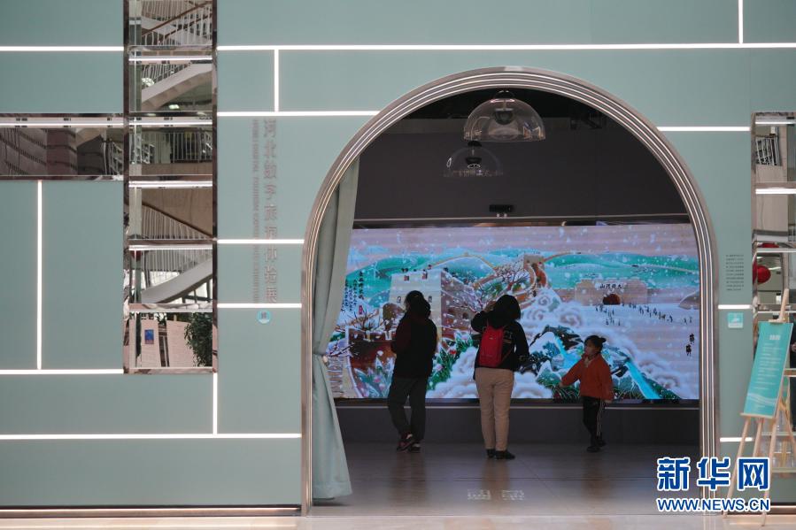 2月22日,市民在河北省图书馆河北数字旅游体验展上参观。
