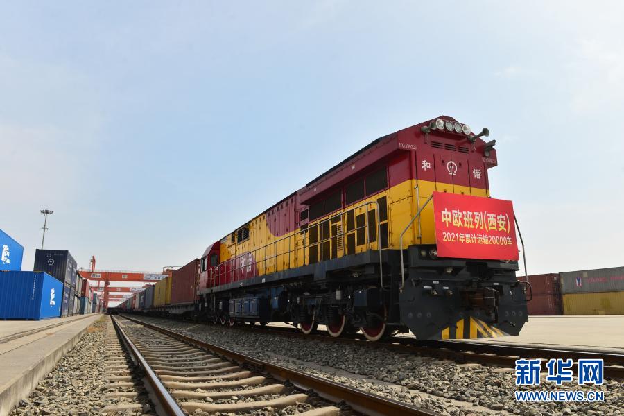 2月22日,X9041次中欧班列从西安新筑车站发车。新华社发(唐振江 摄)