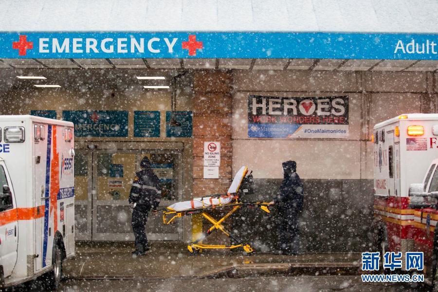 2月22日,美国纽约的医护人员在一家医院外工作。