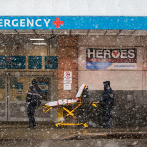 2月22日,救护车辆停放在美国纽约一家医院外。
