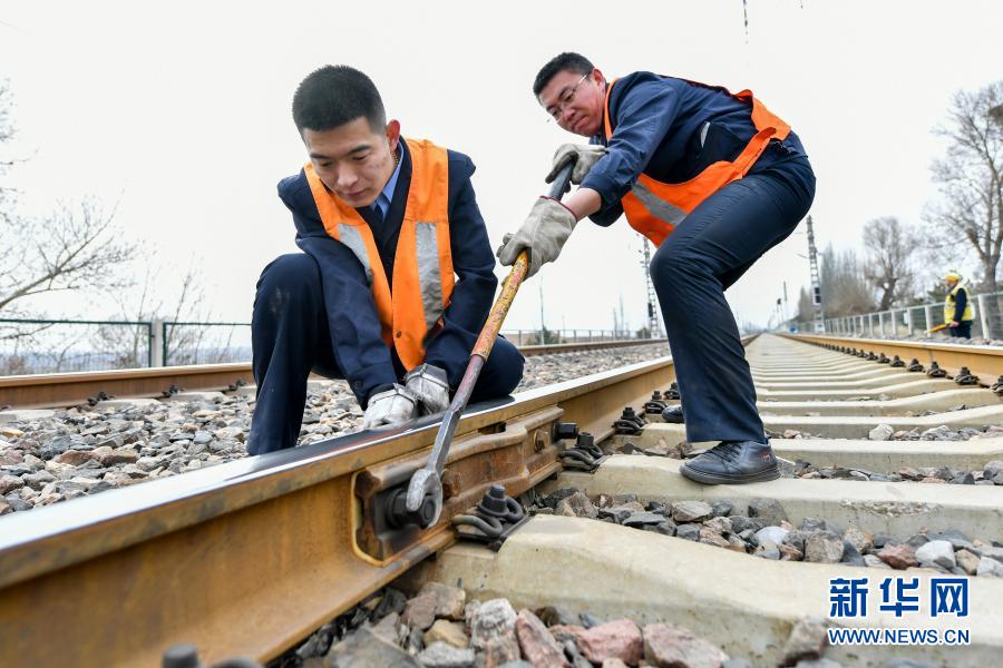 2月23日,中国铁路太原局集团有限公司大同工务段古店工区的工作人员在进行复紧作业。