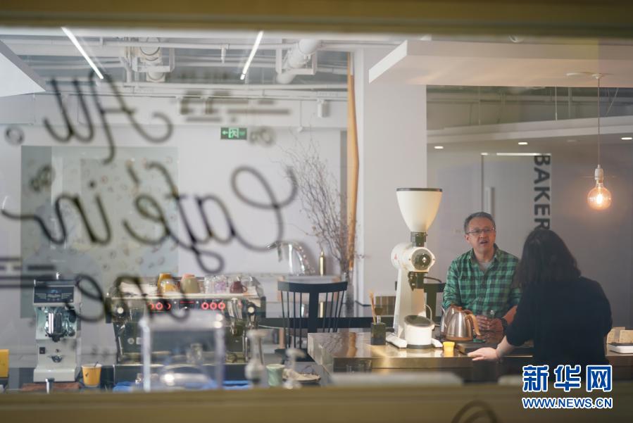 顾客在西安市雁塔区一家咖啡馆内与咖啡师聊天(2月19日摄)。