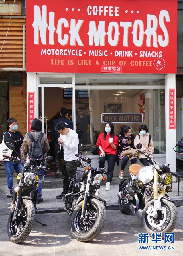 2月23日,顾客在西安市碑林区一家机车主题咖啡馆聚会。新华社记者 邵瑞 摄