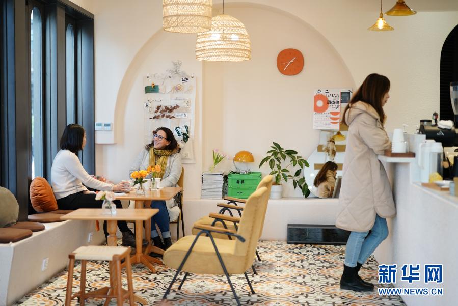 顾客在西安曲江新区一家咖啡馆内喝咖啡聊天(1月28日摄)。新华社记者 邵瑞 摄