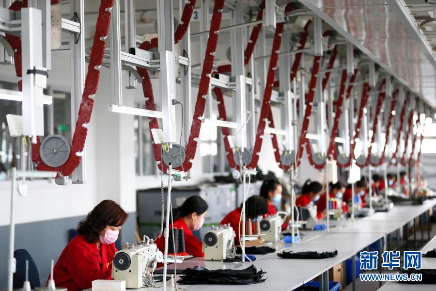 2月23日,青岛市即墨区蓝村街道一家企业的工人在生产出口海外的飞机救生衣包。新华社发(梁孝鹏摄)