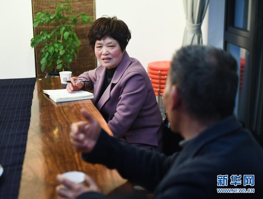 2月22日,全国人大代表、桐庐县江南镇环溪村党总支副书记周忠莲在桐庐县钟山乡陇西村的村民家中,听取村民对于乡村环境提升、民宿业发展的建议和想法。新华社记者 徐昱 摄