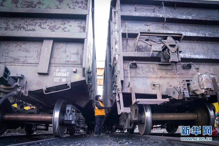 杨福明在绥芬河铁路口岸站进行列车装载质量复检验收作业(2月22日摄)。新华社记者 王松 摄