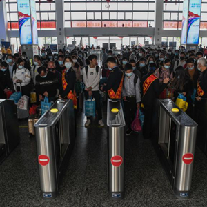 当日,1100多名来自广西百色右江区、靖西市、德保县等地的务工人员在百色火车站免费搭乘动车专列返粤。今年的广西复工专列活动由中国铁路南宁局集团有限公司联合百色、柳州、桂林等多地定制,旨在帮助务工人员及时返岗复工。此次百色开出的是首趟广西返岗复工专列。