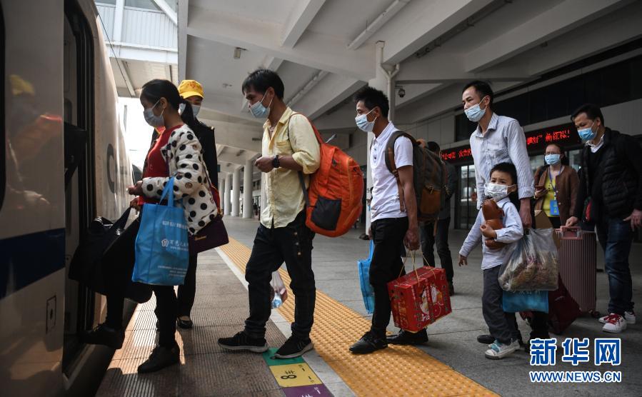 2月23日,乘坐专列的务工人员排队上车。新华社记者 张爱林 摄