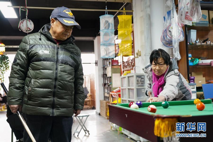 2月23日,老年顾客在店里玩台球。新华社记者 陈钟昊 摄