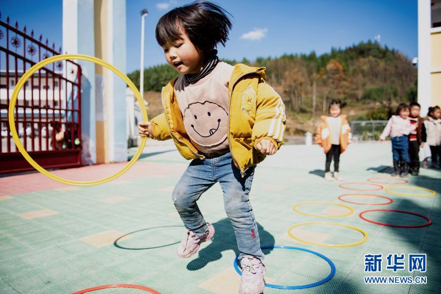 云南省镇雄县以古镇岩洞脚村幼儿园的孩子在操场上玩耍(2020年11月11日摄)。新华社记者 王冠森 摄