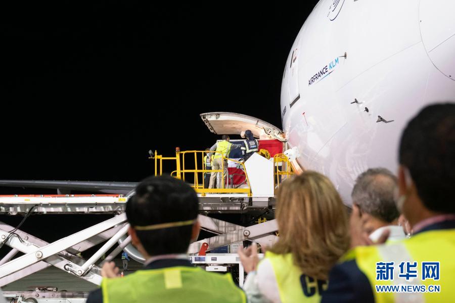 2月23日,在多米尼加首都圣多明各国际机场,工作人员将装有中国科兴新冠疫苗的温控集装箱从机舱中运出。新华社发(多米尼加副总统府供图)