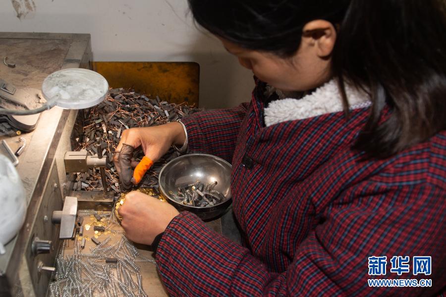 2月24日,朱成珍在家里做计件零工。新华社记者 杜宇 摄