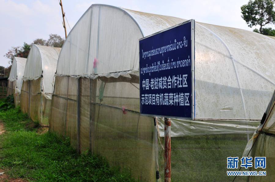 这是2019年2月28日在老挝首都万象北部的金花村拍摄的中国-老挝减贫合作社区示范项目有机蔬菜种植区。新华社记者 章建华 摄