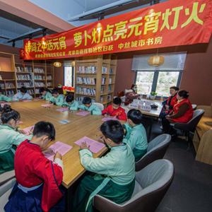 当日,浙江省湖州市吴兴区龙泉街道的志愿者们带着社区的小朋友们在街道城市书房举办传统文化迎元宵活动,传承传统文化,迎接元宵佳节。