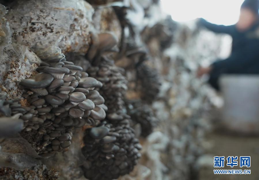 2月24日,新河县新河镇六户村食用菌种植合作社的社员在大棚内采摘蘑菇。