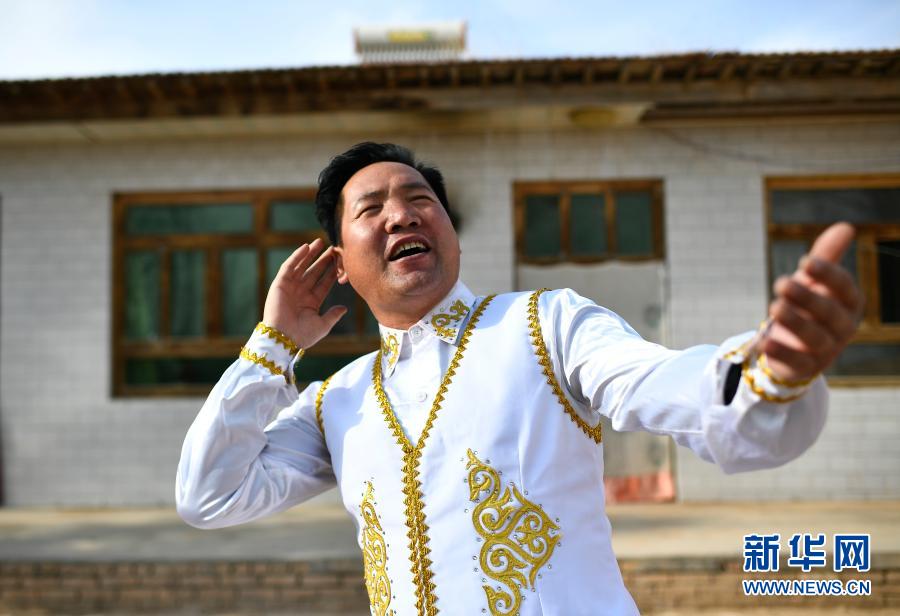 2月23日,马瑞峰在家乡的老屋前唱“花儿”。新华社记者 王鹏 摄