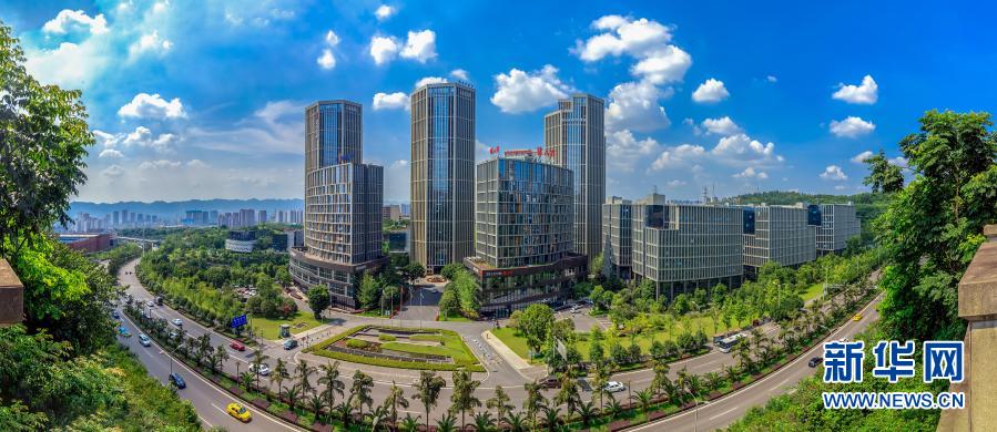 中国(重庆)自由贸易试验区内的重庆两江新区数字经济产业园全景图(资料照片)。地处“一带一路”和长江经济带联结点的中国(重庆)自由贸易试验区,构建“陆上国际贸易规则”初显成效、营商环境持续优化,新兴产业集群加速形成,对西部地区开放发展的示范带动效应正在显现。