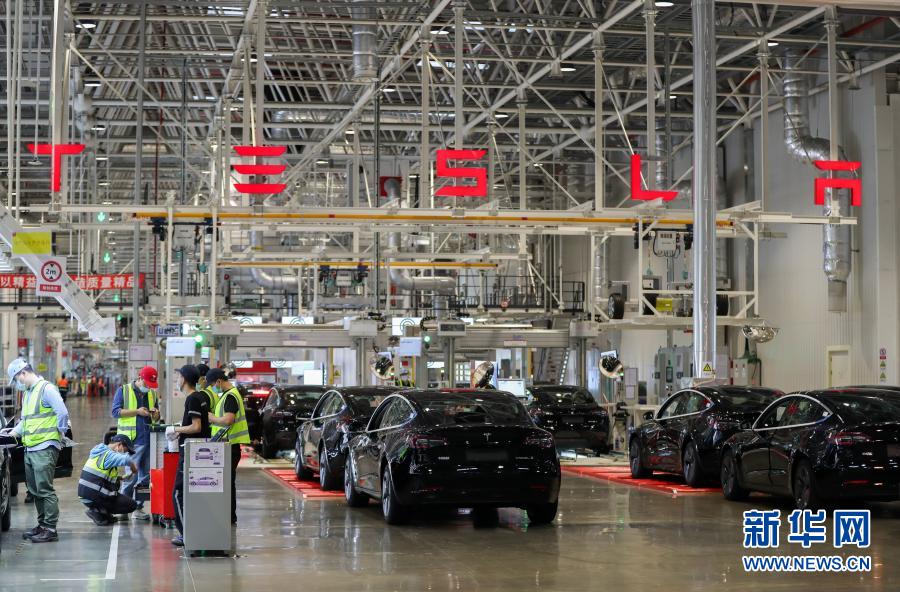 中国(上海)自由贸易试验区临港新片区内的特斯拉上海超级工厂(2020年11月20日摄)。特斯拉上海超级工厂是中国首个外商独资整车制造项目,也是特斯拉首个海外工厂,在2019年“跑”出了当年开工、当年投产、当年交付的“特斯拉速度”。