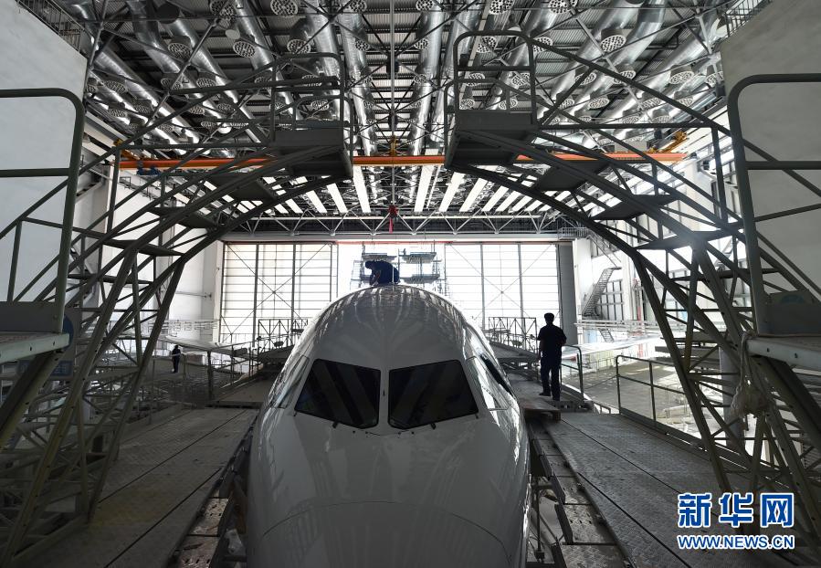 天津海特飞机工程有限公司工作人员在机库内进行维修作业(2020年9月17日摄)。近年来,天津自贸区利用政策创新优势,支持企业开展保税维修再制造业务,助力航空制造维修产业实现集聚发展。区内已聚集了一批高端航空维修企业,成为亚太地区重要的高端维修和检测基地。