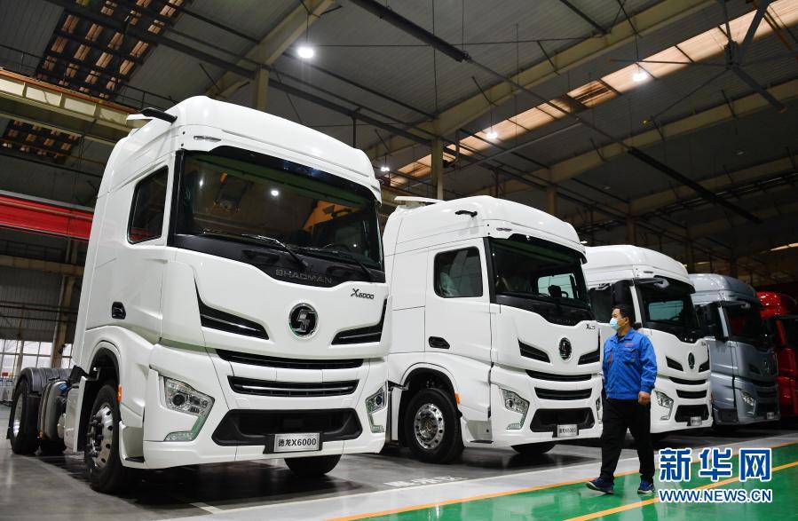 2月24日,工作人员在位于西安的陕西汽车控股集团有限公司查看该公司新上市的X6000无人驾驶重型卡车。新华社记者 张博文 摄