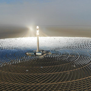 在甘肃省敦煌市向西约20公里处,被称为“超级镜子发电站”的首航高科敦煌100兆瓦熔盐塔式光热电站在戈壁滩上闪耀。电站内的1.2万多面定日镜以同心圆状围绕着260米高的吸热塔,镜场总反射面积达140多万平方米,设计年发电量达3.9亿千瓦时,每年可减排二氧化碳35万吨,是我国目前建成规模最大、吸热塔最高、可24小时连续发电的100兆瓦级熔盐塔式光热电站。