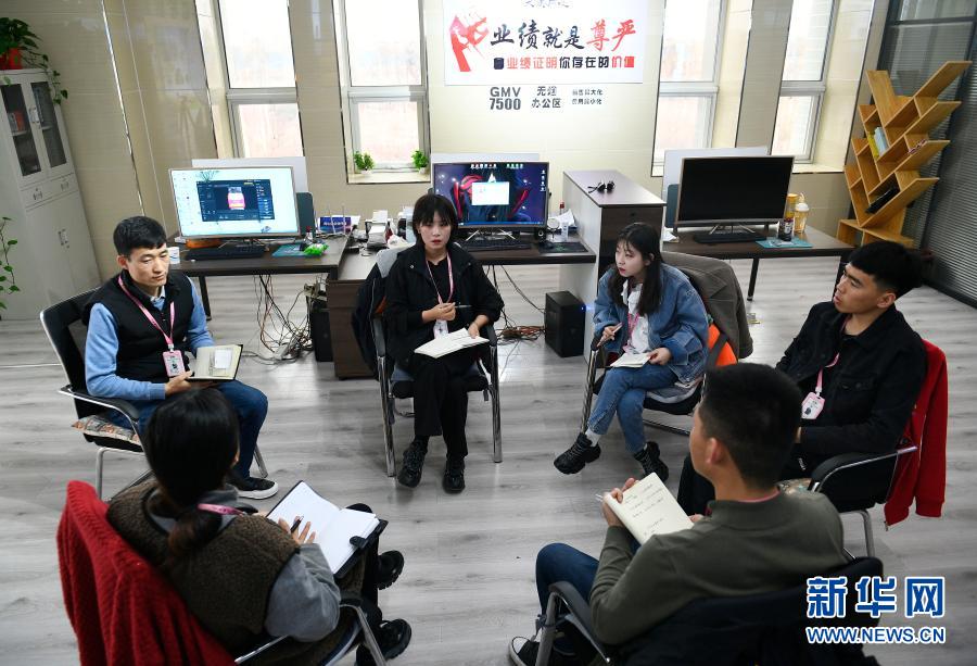 2月24日,宁夏吴忠市同心县“大美同心”电商平台工作人员在开会讨论元宵节农特产品推广活动方案。新华社记者 王鹏 摄