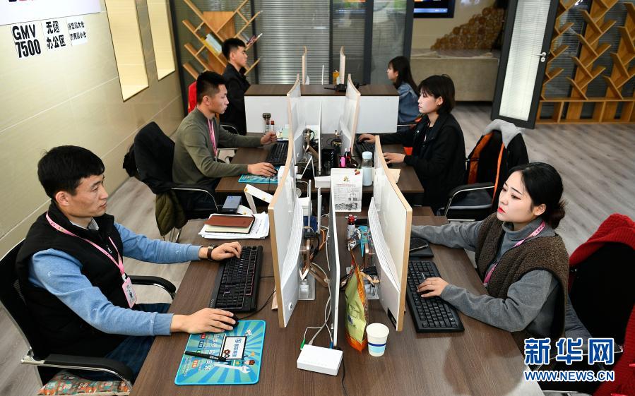 2月24日,宁夏吴忠市同心县“大美同心”电商平台工作人员在线上推介、销售当地农特产品。新华社记者 王鹏 摄