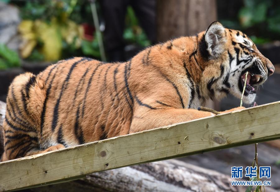 2月25日,广州长隆华南虎吃饱后“剔牙”。