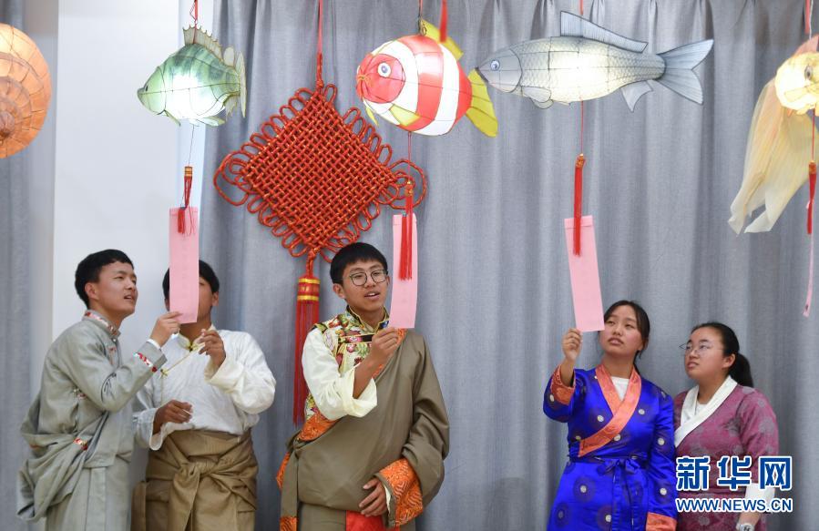 2月25日,在浙江省湖州市南浔区菱湖镇自来水厂活动室,就地过节的菱湖中学西藏班藏族学生在迎元宵活动上猜灯谜。