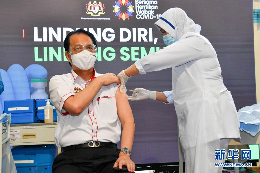 2月24日,马来西亚卫生部总监努尔·希沙姆在普特拉贾亚接种新冠疫苗。新华社发(马来西亚新闻局供图)