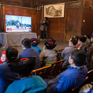 右图:2021年2月25日上午,在湖南省湘西土家族苗族自治州花垣县双龙镇十八洞村,当地干部、群众在一户村民家收看全国脱贫攻坚总结表彰大会直播,聆听习近平总书记宣布脱贫攻坚胜利的喜讯。电视画面中十八洞村党支部书记、村委会主任施金通代表十八洞村领取“全国脱贫攻坚楷模”荣誉称号(新华社记者 陈思汗 摄)。