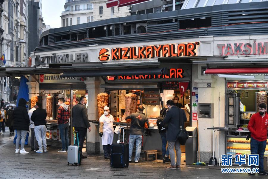 2月25日,在土耳其伊斯坦布尔的塔克西姆广场,人们购买土耳其烤肉。