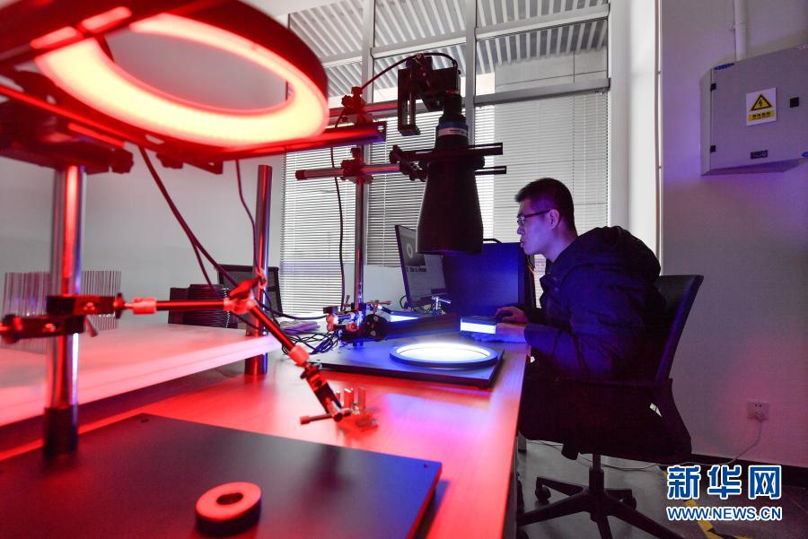 2月24日,在清华大学天津高端装备研究院复合制造与智能识别研究所,工程师在测试智能识别光学系统。新华社发(孙凡越 摄)
