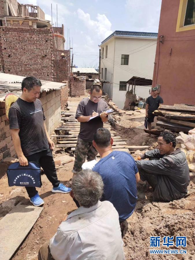 2019年6月,吴志宏(左一)在补干村危房改造现场。新华社发