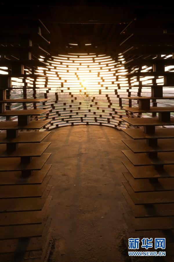 2月24日,在比利时小镇博尔赫隆附近,阳光照进“透明教堂”内部。新华社记者 张铖 摄