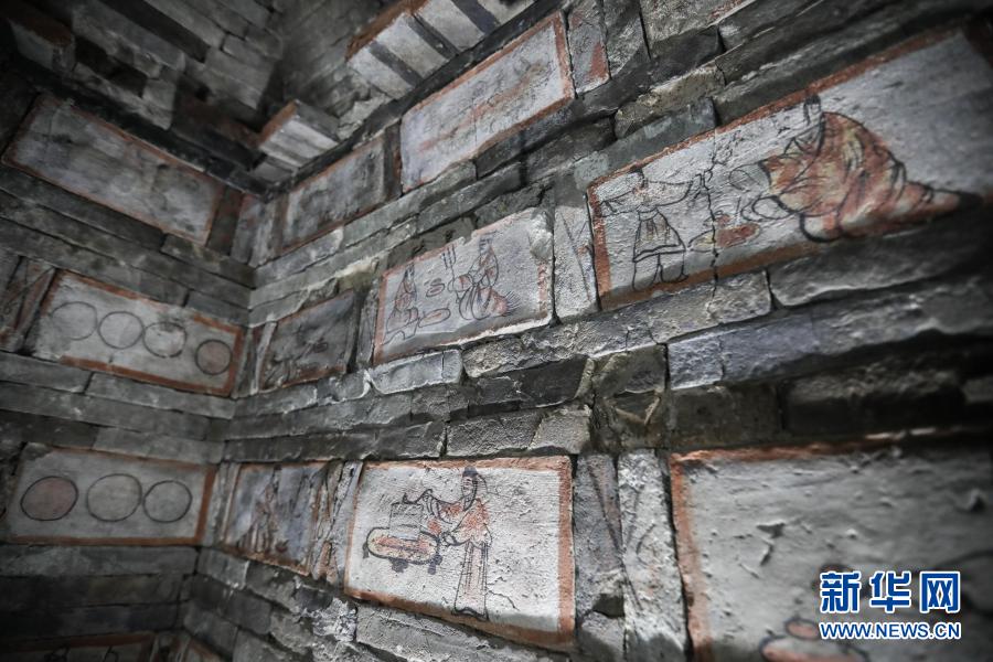 这是2月25日在嘉峪关新城魏晋墓群六号墓拍摄的墓室壁画,反映男墓主人家的生活宴饮场景。新华社记者 马希平 摄