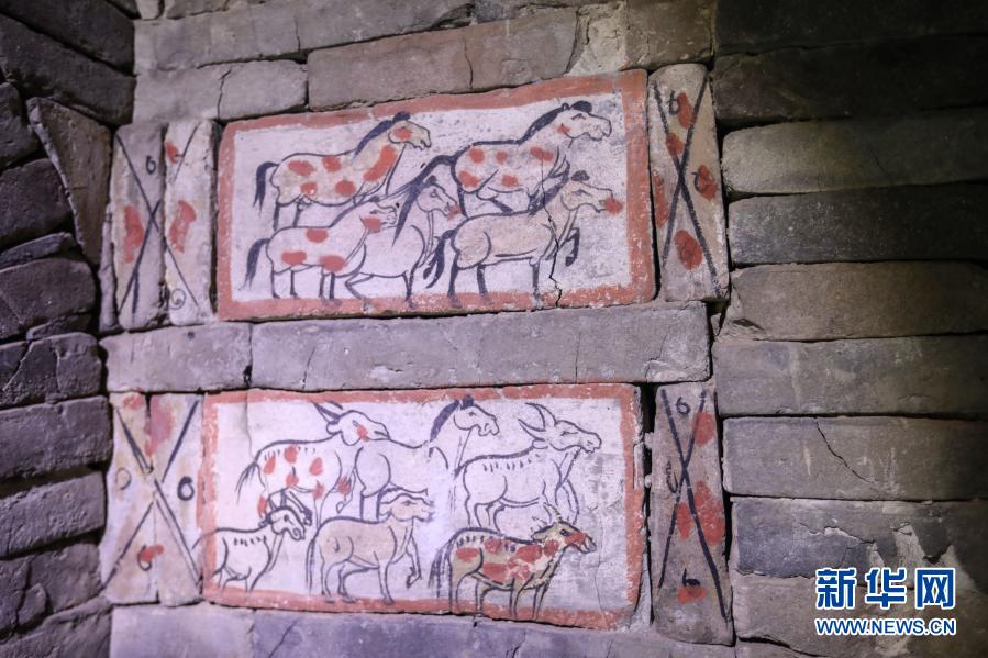 这是2月25日在嘉峪关新城魏晋墓群六号墓拍摄的画像砖《畜收图》,反映魏晋时期河西地区畜牧业情况。新华社记者 马希平 摄